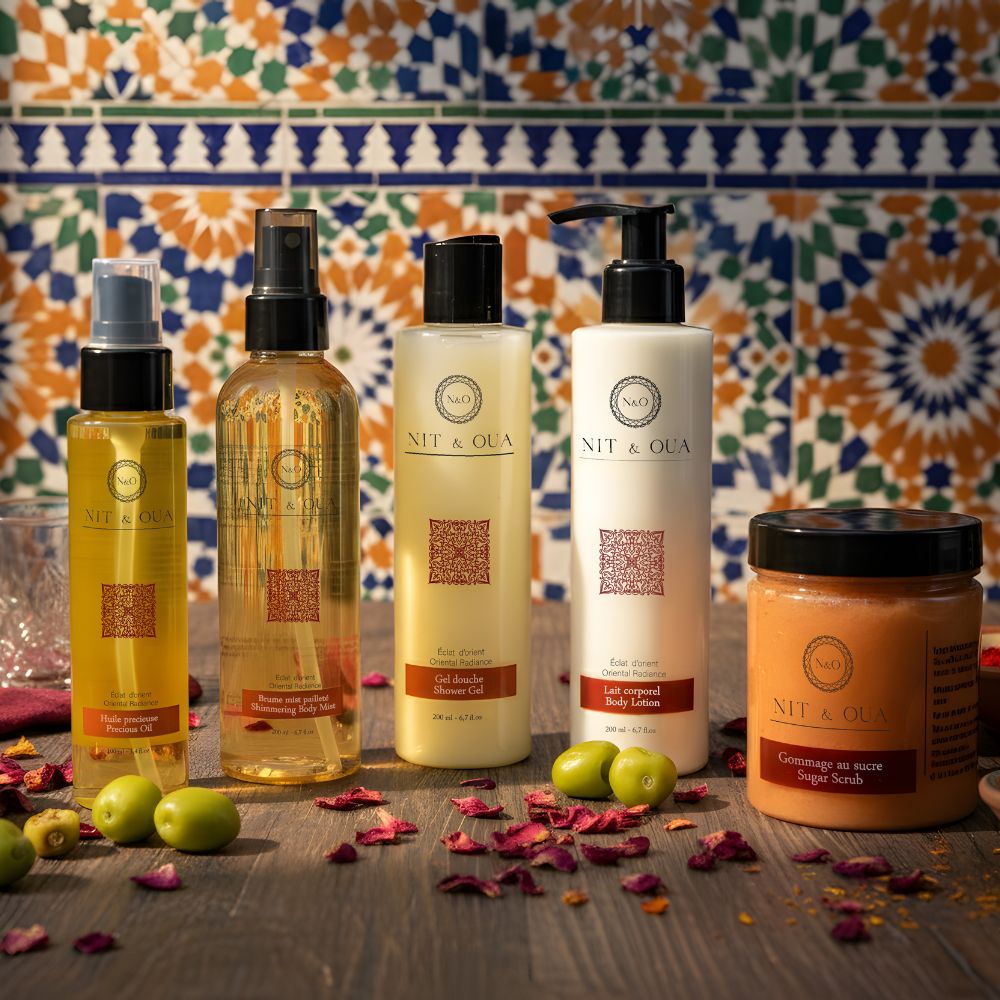 Né de l’héritage raffiné des rituels orientaux et inspiré par l’art du hammam, Éclat d’Orient est une expérience sensorielle qui illumine la peau et réveille les sens. Chaque geste, chaque texture et chaque parfum racontent une histoire de beauté intemporelle, où la tradition rencontre l’élégance moderne. Tous les produits, sont enrichis en huile d’argan, reconnue pour ses propriétés nourrissantes et régénérantes.