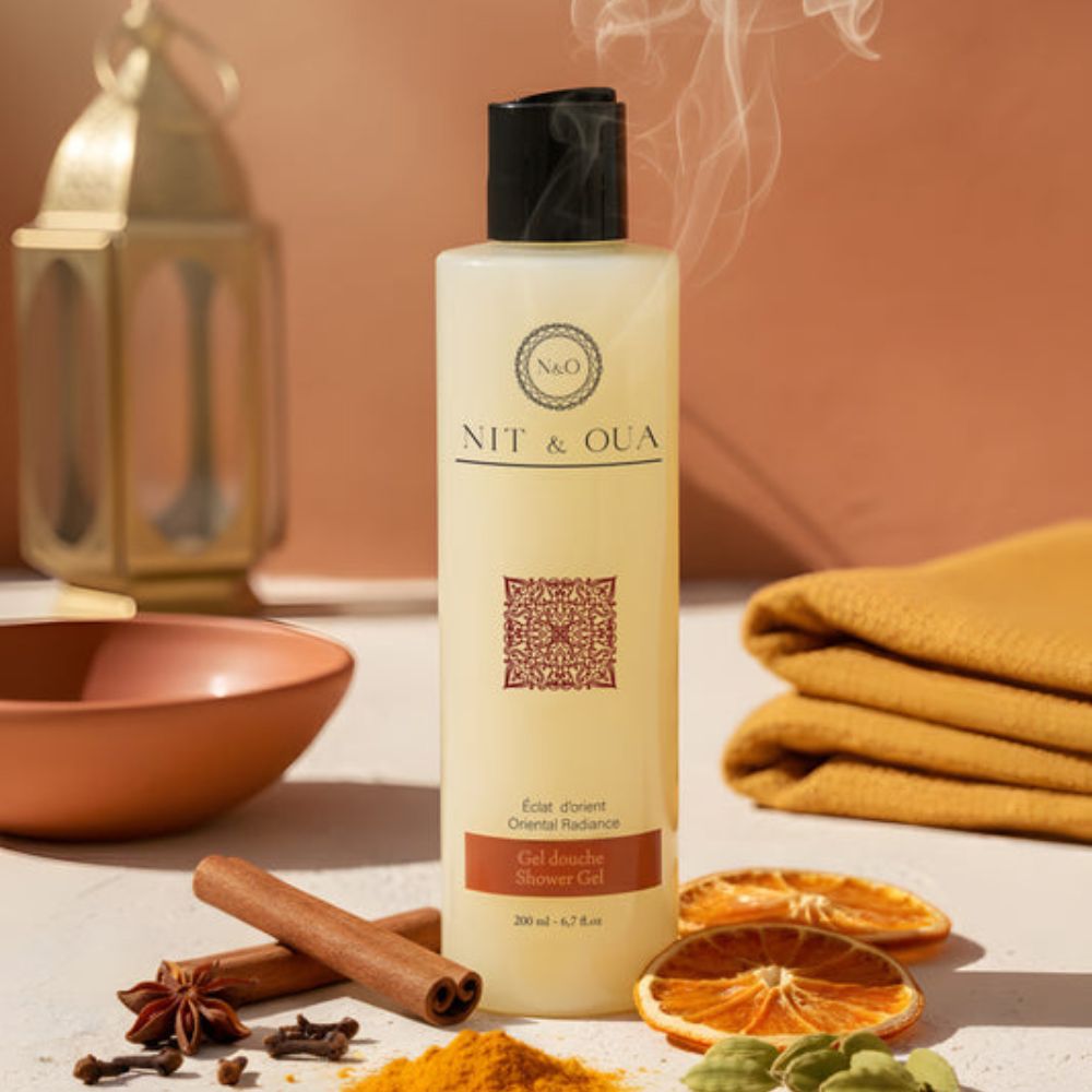 Né des rituels orientaux et inspiré par l’art du hammam, Éclat d’Orient offre une expérience sensorielle qui illumine la peau et éveille les sens. Son parfum associe des notes de caramel, d’ambre, de vanille, de musk et de bois de santal, pour un sillage gourmand et élégant. Chaque produit, enrichi en huile d’argan nourrissante et régénérante, allie tradition et modernité dans un rituel de beauté unique.